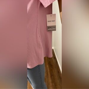 Chic pink ribbed top by Nine West perfect for a casual look. With the soft spun fabric you’ll stay cool and feel cozy with a loose fit. Longer cut perfect for modesty, taller women, or curves.