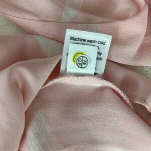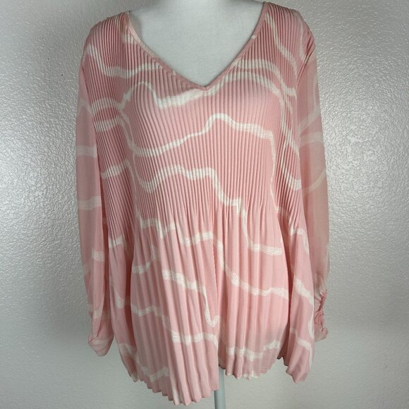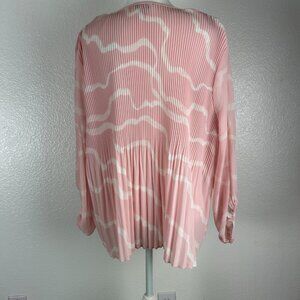 Nine West Pink & White Pleated V-Neck Long Sleeve Top Blouse Size L Summer Top