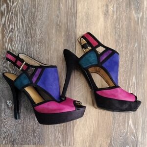 Elevate your style with these Nine West heels, featuring a striking combination of pink and purple hues. The open-toe design and slender heel add a touch of elegance, making them ideal for special occasions. Crafted with attention to detail, these shoes offer a chic and sophisticated look. #NineWest #ColorBlockHeels #PinkHeels #PurpleHeels