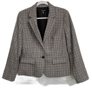 Nine West Tartan Plaid Black White Grey Career Business Blazer Jacket With Pockets