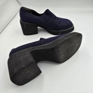 Nine West Platform Loafer Women's 9M Blue Chunky Heel Fabric Slip On Shoes