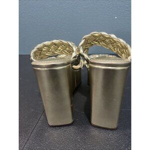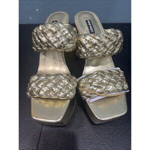 Nine West Platform Wedge Sandals Womens 9.5 Gold Braided Chunky Square Toe Retro