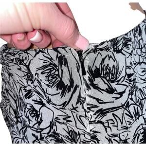 Nine West Pleated Silk Midi Skirt Pull-on A-line Midi length Pleated Fully lined Hidden side zipper and hook closure Allover black and gray print over solid black lining Shell: 100% Silk, Lining: 100% Polyester Approx.