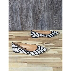 Nine West Pointed Toe Flats 5M Black White Diamond Print Cow Fur Leather Slip On