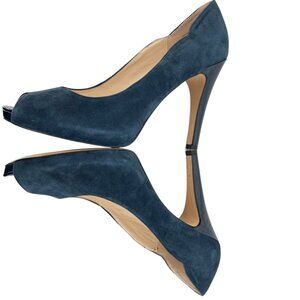 Nine West Portofino Blue Suede Leather Peep Toe 4 Inch Pumps Size 10