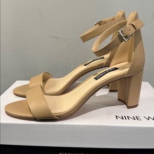 Nine West Pruce Beige Natural Heeled Sandals 5.5 New NIB