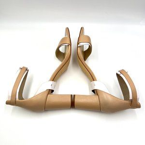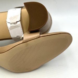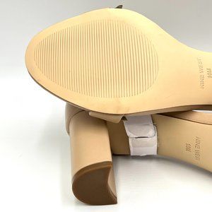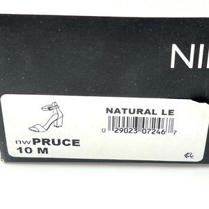 Nine West Pruce Beige Tan Natural Leather Open Toe Block Heels Sandals Shoes 10M