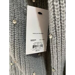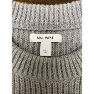 NWT Nine West Pull Sweater Smocked Grey Mid-weight Knit Crystal Embellishments Crew Neck Long Sleeves Women's Size L. Retail price: $60