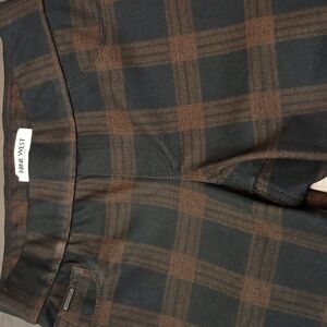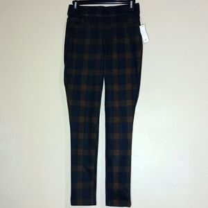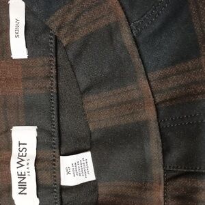 Nine West Pull-On Ponte Pant in Orange/Black but Looks More Like Brown/Black. Comfortable Slight-Stretch Fabric with Elastic Waistband for Easy Pull-On. High Rise with Small Front Coin Pocket and Functional Back Pockets.