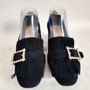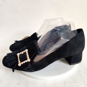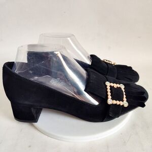 Nine West Pumps Size 8 Black Suede Leather Low Block Heels Office Kilty Pilgram