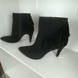 Nine West Pureheart2 Fringe Trim Ankle Boots 7.5 Black