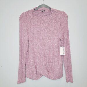 Nine West Purple Marled Long Sleeve Knit Mock Neck Twist Front Sweater Large New