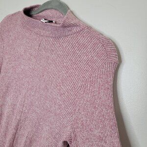 purple pink sweater long mock nine large sleeve neckline twist shirt top new knit west tags cozy pastel modest winter fall office business casual