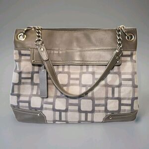 Nine West Purse Shoulder Bag Tote Geometric Blocks Platinum Gray Neutral Roomy
