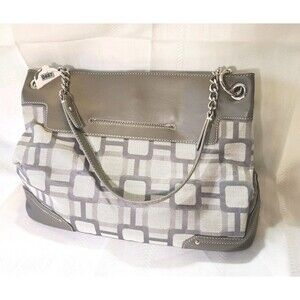 Nine West Purse Shoulder Bag Tote Geometrical Blocks Gray Large Roomy. Excellent Preowned Condition. Nonsmoking Seller. Ready for immediate shipment.