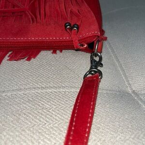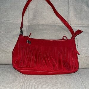 Nine West RED Fringed Purse Handbag Shoulderbag