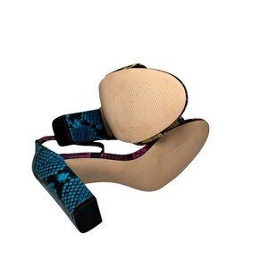Nine West Rainbow Snake Print Leather Block Heeled Sandals NEW Size 6