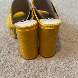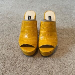Chic croc-embossed mules with a bold platform. Mustard hue adds flair. Never worn. Box included. All reasonable offers accepted.