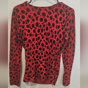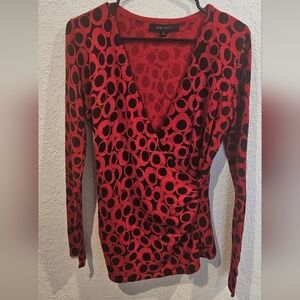 Nine West Red & Black Wrap Blouse Long Sleeve Small