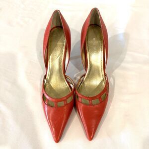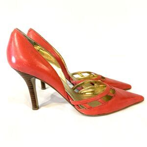 Nine West Red Coral Leather Cutout D'Orsay Bertha Pumps Size 8