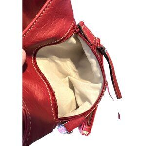 This stylish Nine West crossbody bag combines practicality with a trendy design. The vibrant red hue and faux leather texture make it versatile.