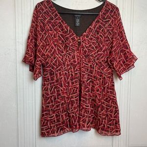 Features: Lightweight and Flows, elbow length sleeves, side zipper.