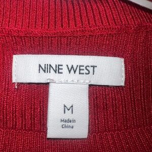 Elevate your everyday style with this gorgeous Nine West ribbed knit top in a rich, vibrant red. The fitted silhouette and diagonal ribbing create a flattering, sculpted look that moves with you. Finished with a subtle scalloped hem for a feminine touch. Perfect for work, dinner, or layering under jackets. Pairs beautifully with denim, trousers, or a sleek pencil skirt.