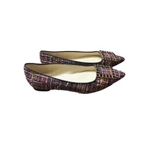 Nine West Red Tweed Jeweled Flat Sz 8.5