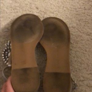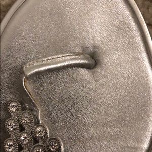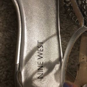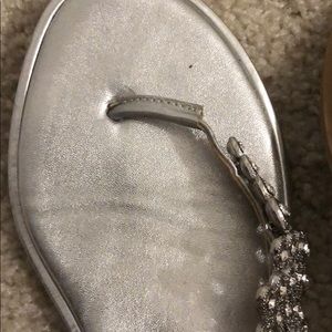 Nine West Flat,silver gladiator-like sandal with rhinestone piece in center. Worn twice and one time was my wedding.
