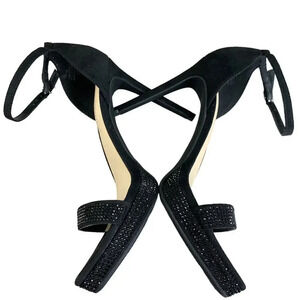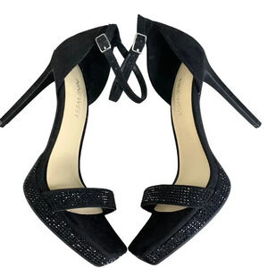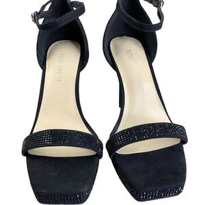 Nine West Rhinestone Suede Stiletto Platform Heels Strap Sandals Size 6M Black