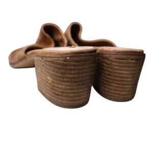 Nine West Ricasolio sandals open toe block heel brown leather suede stripes boho summer mule slip on classic minimalist