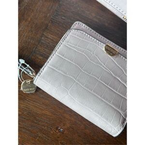 Nine West beautiful faux croc embossed bag and wallet combo in soft lavender. NWT! Great for Easter, garden party weddings, showers, church, etc. Removable and adjustable shoulder strap. Gold tone hardware. Handle with 3 inch drop. Magnetic closure front flap. Internally there is 1 slip pocket and 2 zip pockets. Twill lining. Wallet has card slots, bill holder, wrap around zipper, external slip pocket. See pics for measurements.