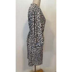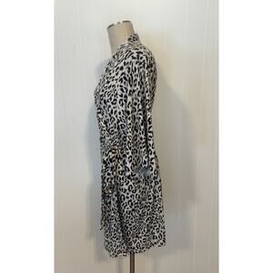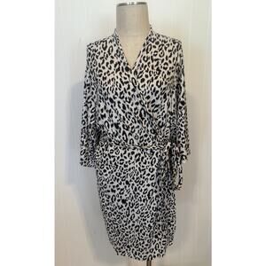 Nine West Robe Womens 1X Black White Leopard Animal Print Belted Sleepwear Lounge
