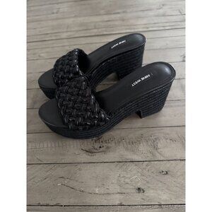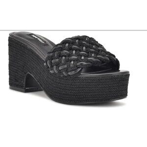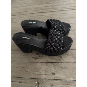 Nine West Roxana Platform Wedge Slide Sandals Black Braided Size 7.5