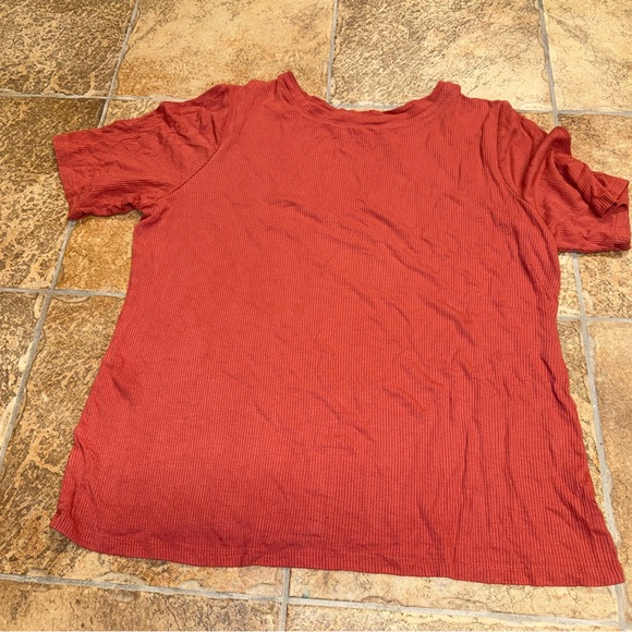 Stylish ribbed top by Nine West. Features a rich rust color. Ideal for casual outings.