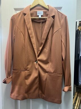 Tailored single-button blazer from Nine West. Notched lapel and long sleeves. Front welt pockets for a neat look. Smooth seams create a polished silhouette.