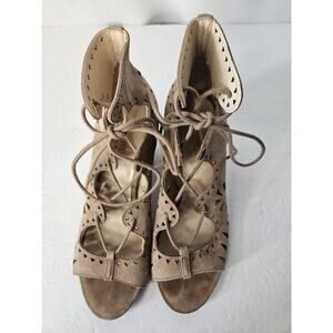 Nine West Sandals WMNS 7.5 Brown Janelo Heel Open Toe Block Strappy Boho Cut Out