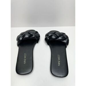 Nine West Sandals Womens Size 6 Black Braided Strap Slip On Flats