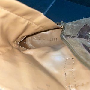 Nine West Scorpion Heeled Boots - Olive Green Suede - Size 6