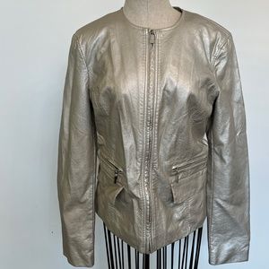 Nine West muted gold faux leather scuba jacket. EUC. No rips, stains, or tears.
