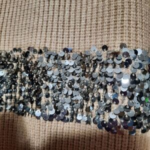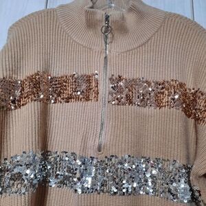 Keywords: Nine West, sequin sweater, striped sweater, half zip sweater, mock neck sweater, pullover sweater, beige sweater, sparkly sweater, womens sweater, extra large sweater, XL sweater, new with tags sweater, holiday sweater, glam sweater