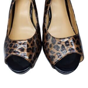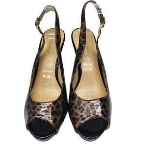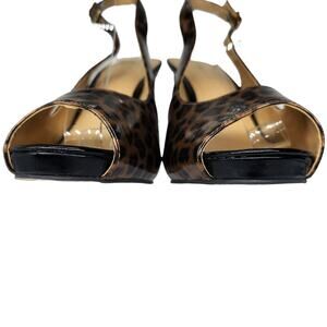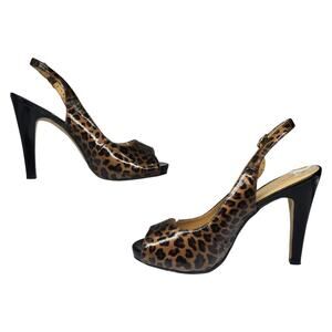 Nine West Shoes 8 Cheetah Brown Black Slingback Peep Toe Leopard Stiletto Heels