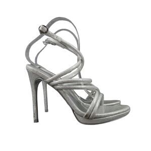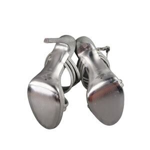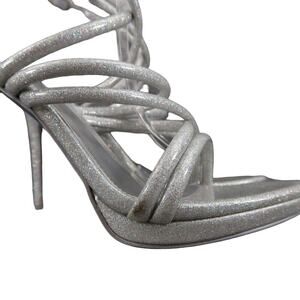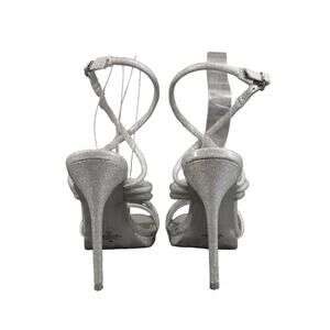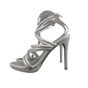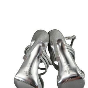 Pre-owned Nine West Shoes Womens 8 Heeled Sandal Ankle Strap Pumps Platform Silver Glitter