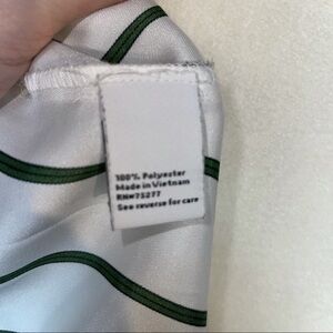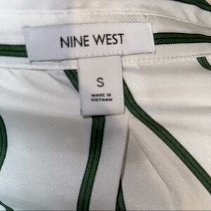 Gorgeous green pinstripe blouse with buttons at side. Cuffed, raglan sleeves. Tunic length. In excellent, like-new condition!!