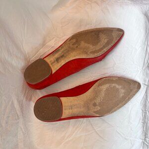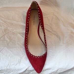 Size 8 burnt-siena colored suede flats with gold detail from Nine West. Lightly worn and in great condition.