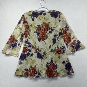 Nine West Silk Y2K Floral V-Neck Flowy Blouse Top Size 10 Green Cream Fairycore