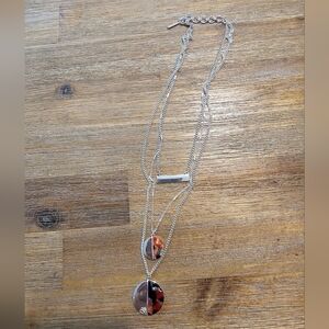 🦋 Nine West Silver Tone Bar And Resin Disc Pendant Necklace