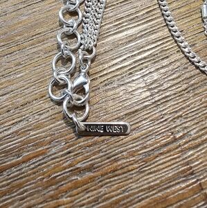 Nine West Silver Tone 16/18/20 Bar And Resin Disc Pendant Necklace New