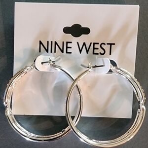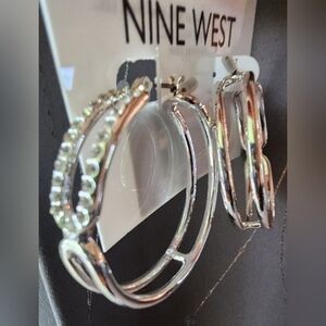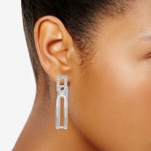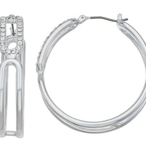 Nine West Silver Tone Crystal Rhinestone Paperclip Hoop Earrings NWT