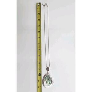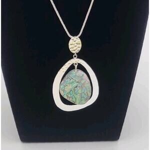 Nine West Silver Tone Necklace 22" Chain with Abalone Teardrop Pendant